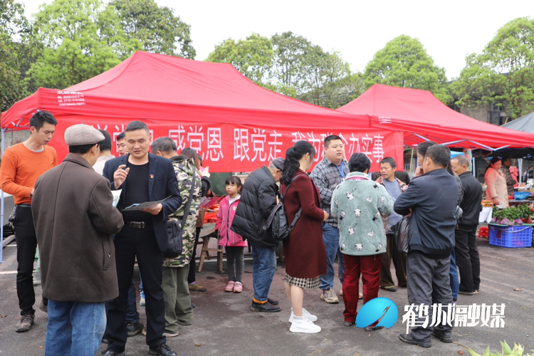 4月17日,是鹤城区黄金坳镇芦坪赶集日。当天上午,由镇党员、团员、红色志愿者组成的“红色群团”给广大群众带来了一场形式多样的“红色”赶集。