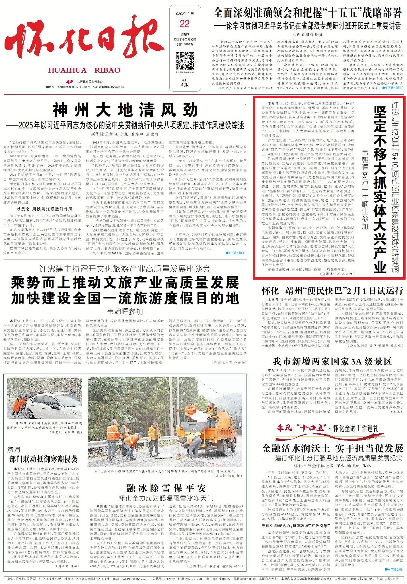 怀化日报全媒体讯 1月21日上午,市委书记许忠建主持召开“5+10”现代化产业体系建设讲评会。他强调,要深入学习贯彻中央经济工作会议以及习近平总书记关于湖南工作的重要讲话和指示批示精神,认真落实省委、省政府部署要求,坚定不移大抓实体、大兴产业,加快建设“5+10”现代化产业体系,为奋力建设五省边际区域性中心城市提供坚实支撑。市委副书记、市长韦朝晖,市人大常委会主任李万千,市政协主席牛顺生参加。