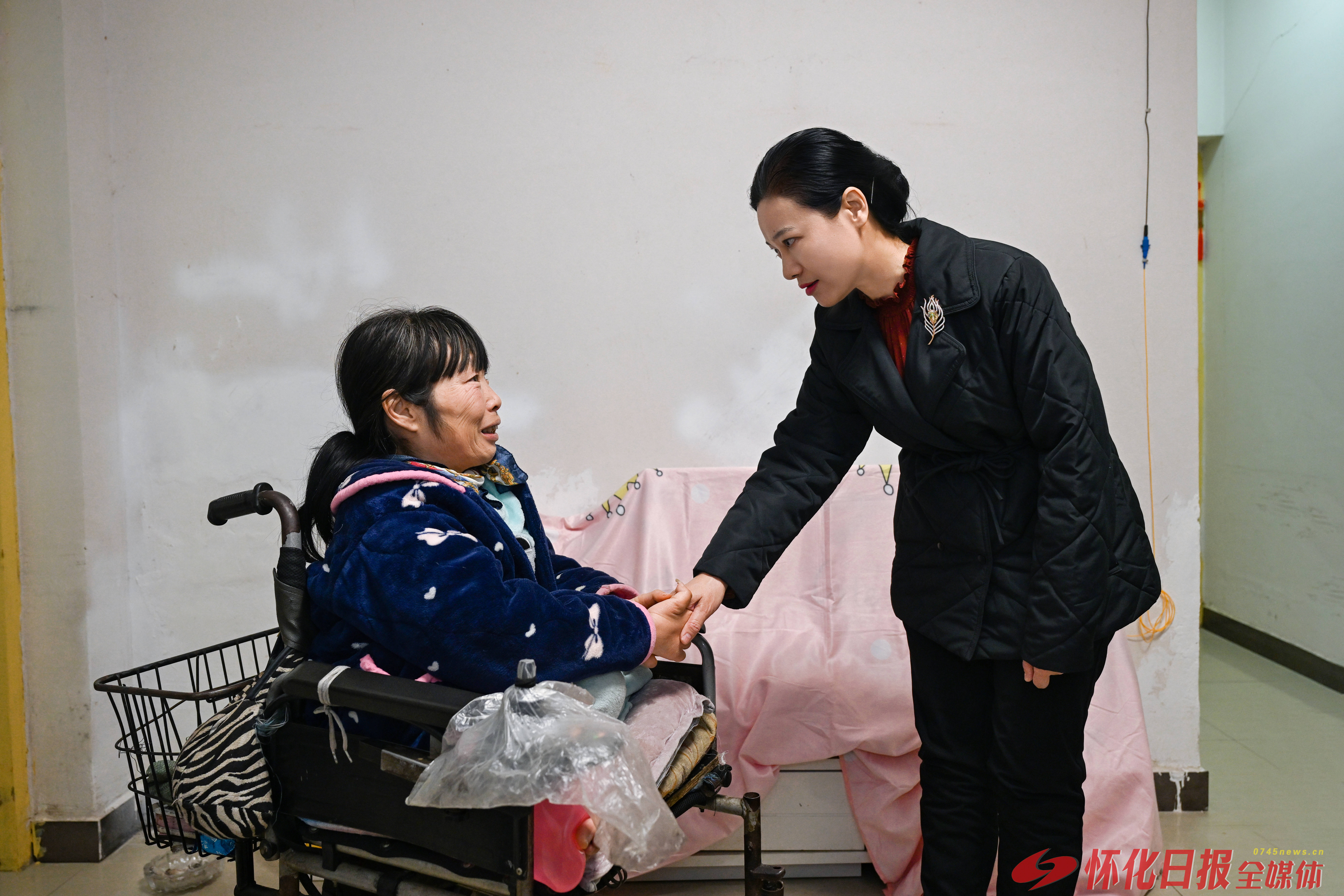 (2月11日上午,市委副书记、市长韦朝晖看望慰问困难妇女阳海鹰。怀化日报全媒体记者吴涛摄)