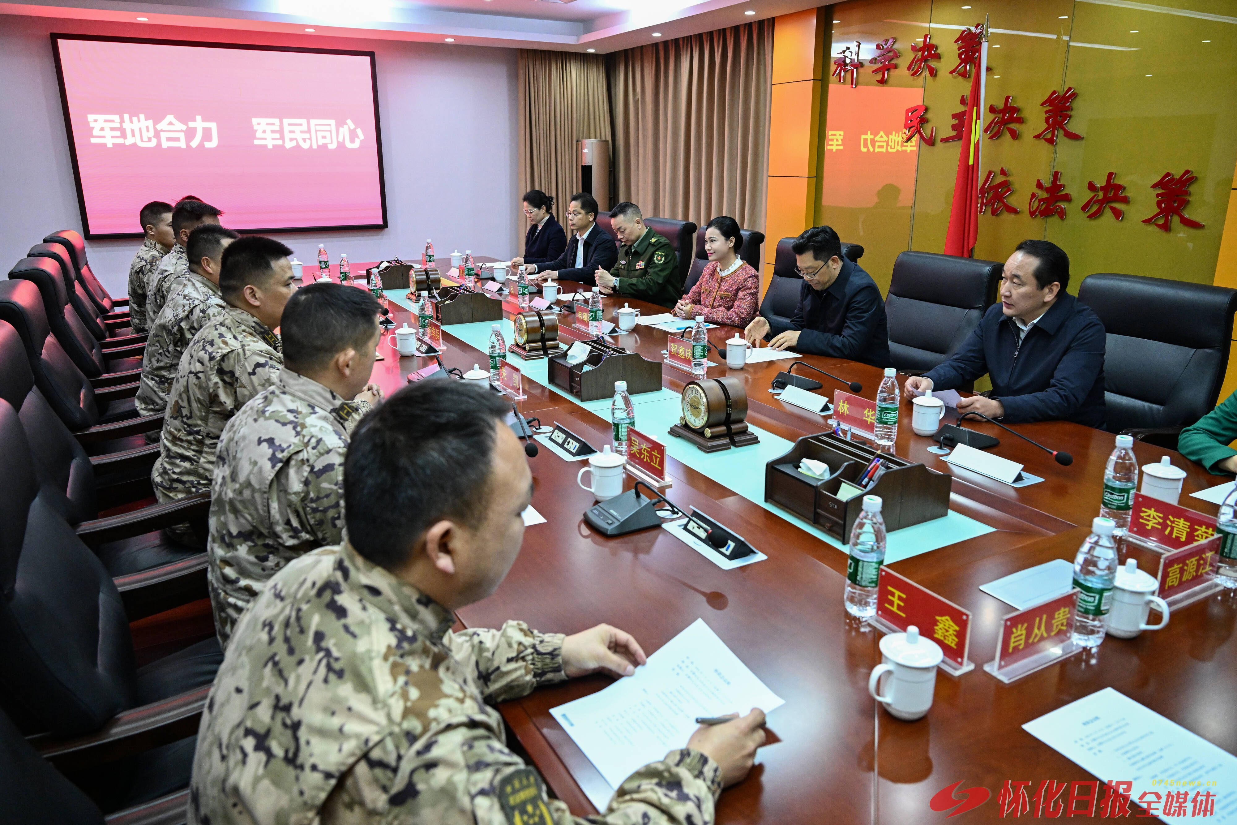 (2月12日下午,市委书记许忠建在怀化军分区走访慰问,并与官兵代表座谈交流。怀化日报全媒体记者 彭军 摄)