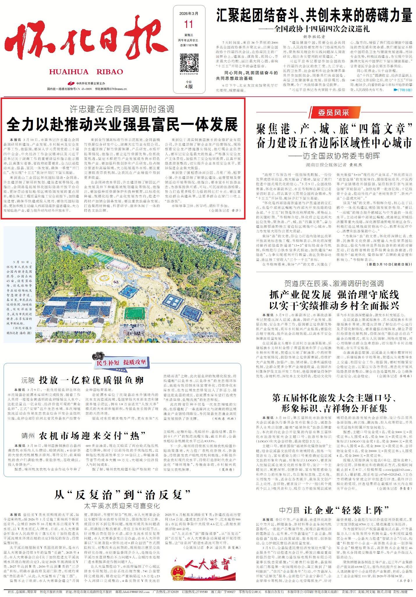 怀化日报全媒体讯 3月10日,市委书记许忠建在会同县调研项目建设、产业发展、乡村振兴及安全生产等工作。他强调,要深入学习贯彻党的二十届四中全会、中央经济工作会议精神以及习近平总书记关于湖南工作的重要讲话和指示批示精神,认真落实省委、省政府部署要求,全力以赴推动兴业、强县、富民一体发展,确保一季度“开门红”,为实现“十五五”良好开局打下坚实基础。