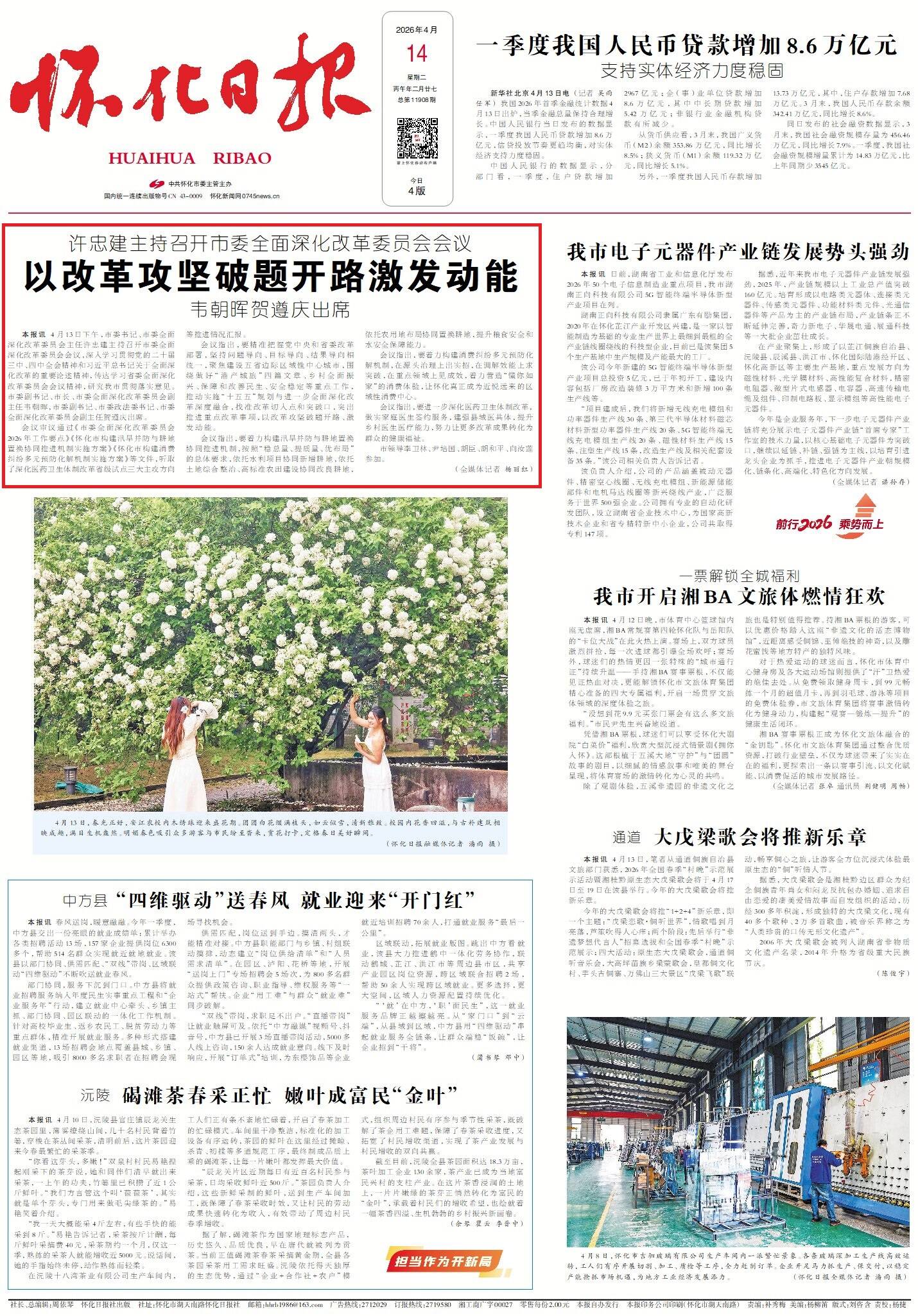 会议审议通过《市委全面深化改革委员会2026年工作要点》《怀化市构建汛旱并防与耕地置换协同推进机制实施方案》《怀化市构建消费纠纷多元预防化解机制实施方案》等文件,听取了深化医药卫生体制改革省级试点三大主攻方向等推进情况汇报。