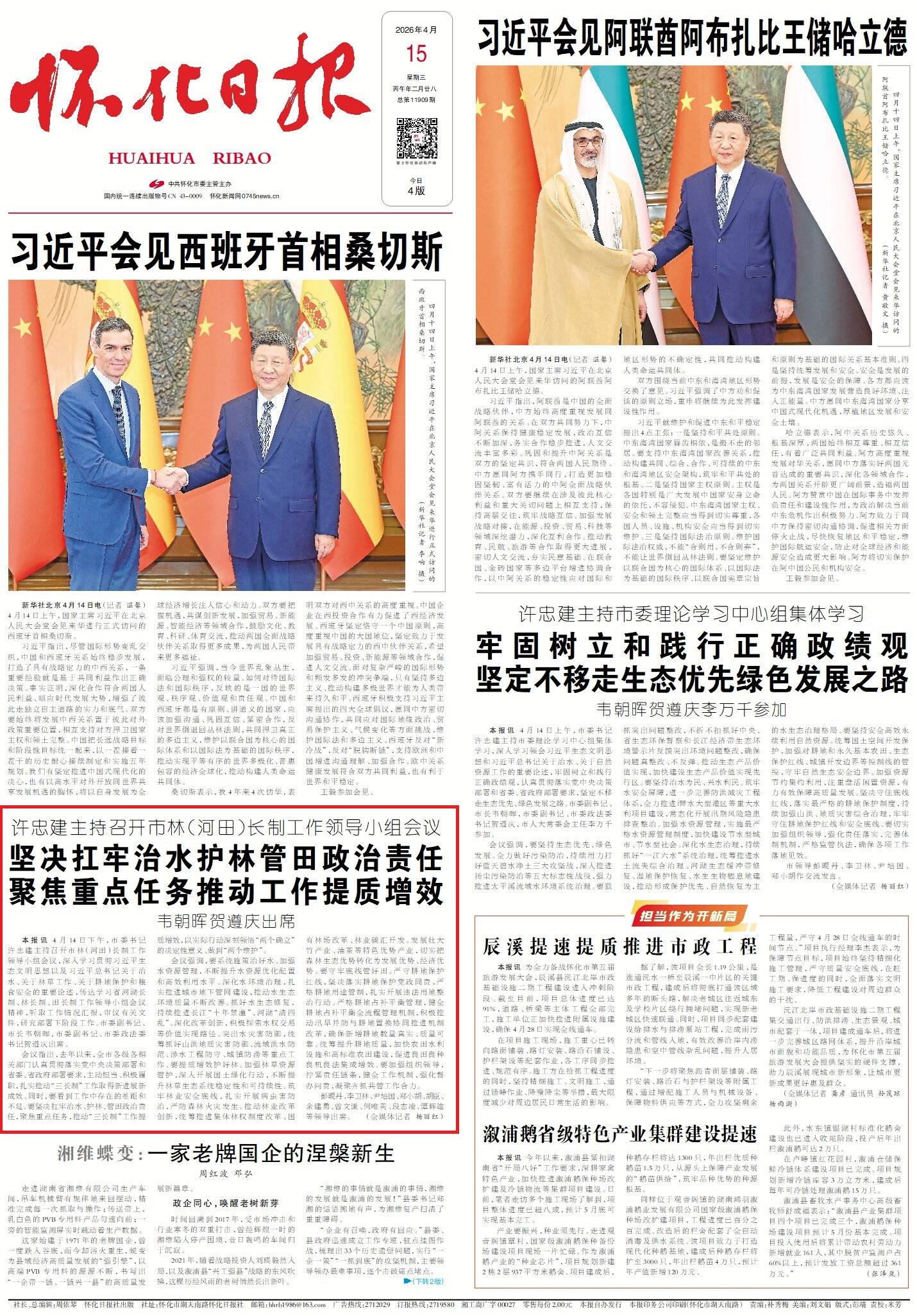 怀化日报全媒体讯4月14日下午,市委书记许忠建主持召开市林(河田)长制工作领导小组会议,深入学习贯彻习近平生态文明思想以及习近平总书记关于治水、关于林草工作、关于耕地保护和粮食安全的重要论述,传达学习省河湖长制、林长制、田长制工作领导小组会议精神,听取工作情况汇报,审议有关文件,研究部署下阶段工作。市委副书记、市长韦朝晖,市委副书记、市委政法委书记贺遵庆出席。