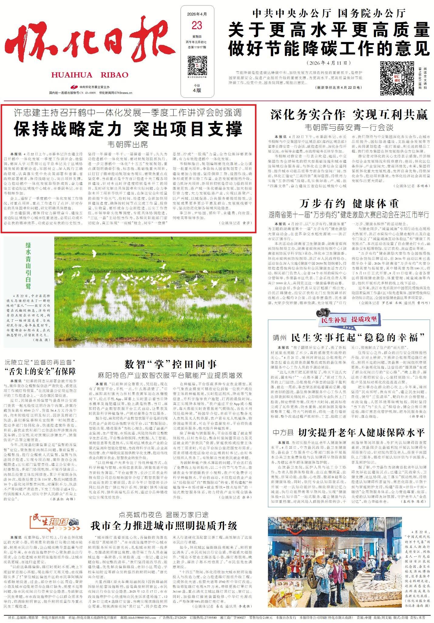 怀化日报全媒体讯4月22日上午,市委书记许忠建主持召开鹤中一体化发展一季度工作讲评会。他强调,要深入学习贯彻习近平总书记关于区域协调发展的重要论述,牢固树立、深入践行正确政绩观,认真落实党中央决策部署和省委、省政府部署要求,保持战略定力,突出项目支撑,全力推动鹤中一体化发展取得新成效,奋力建设五省边际区域性中心城市。市委副书记、市长韦朝晖参加。