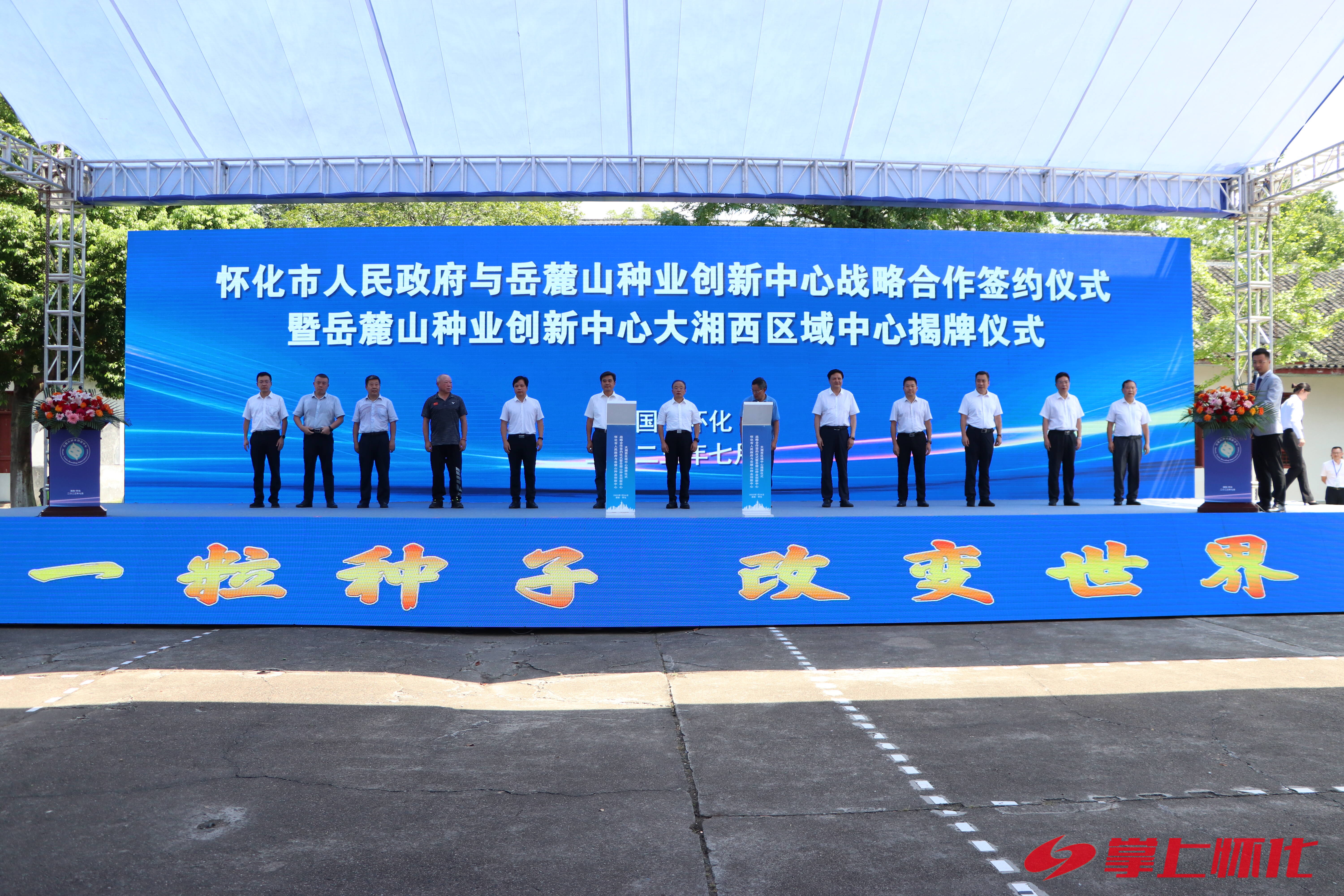 (7月24日,岳麓山种业创新中心大湘西区域中心正式揭牌,现场签署《怀化市人民政府 岳麓山种业创新中心战略合作协议》等8个科技合作协议。)