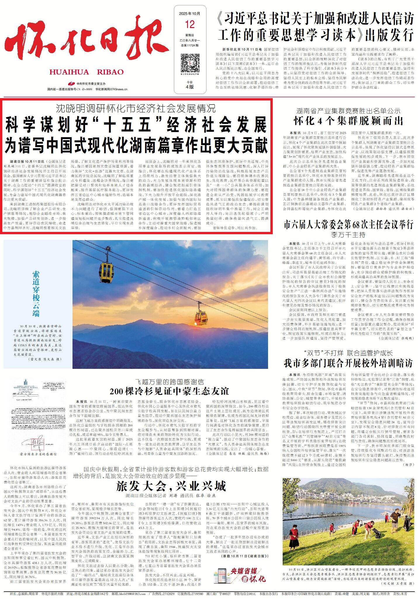 湖南日报10月11日讯(全媒体记者 刘燕娟)11日,省委书记沈晓明在怀化调研经济社会发展情况并主持召开座谈会,强调要深入学习贯彻习近平总书记关于湖南工作的重要讲话和指示批示精神,在全力推动“十四五”圆满收官的同时,科学谋划好“十五五”经济社会发展,为奋力谱写中国式现代化湖南篇章作出更大贡献。