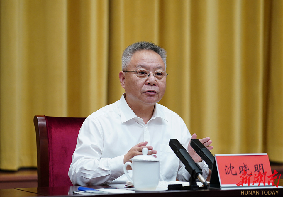 沈晓明强调,要持续用力打造国家重要先进制造业高地,坚持抓大企业大项目,以科技创新引领产业创新,以应用场景创新推动产业发展,加快补齐生产性服务业短板。要持续用力打造具有核心竞争力的科技创新高地,培育构建战略科技力量,加快科技成果转化,支持大学生创新创业,支持长沙全球研发中心城市建设,吸引集聚一批高层次人才。要持续用力打造内陆地区改革开放高地,统筹推进各项重点改革任务,稳步扩大规则、规制、管理、标准等制度型开放,着力蹚出一条内陆地区高水平改革开放的新路子。要推动区域协调发展,主动对接融入国家重大战略,优化省内区域发展格局。要推动乡村全面振兴,扛牢粮食和重要农产品稳产保供责任,提高农业产业化水平,加强乡村规划、建设和管理,推进脱贫地区全面振兴。要加强生态环境保护,抓好突出生态环境问题整改,打好污染防治攻坚战,推进绿色低碳转型发展,深化生态文明体制改革。要着力改善民生和加强社会治理,积极推动教育教学、三医联动等改革,提高城乡居民收入,加大社会事业投入力度,加强跨部门资源统筹。要更好担负起新时代的文化使命,重点答好文化和科技、文化和旅游“两道融合命题”,为现代化建设凝聚强大的精神力量。