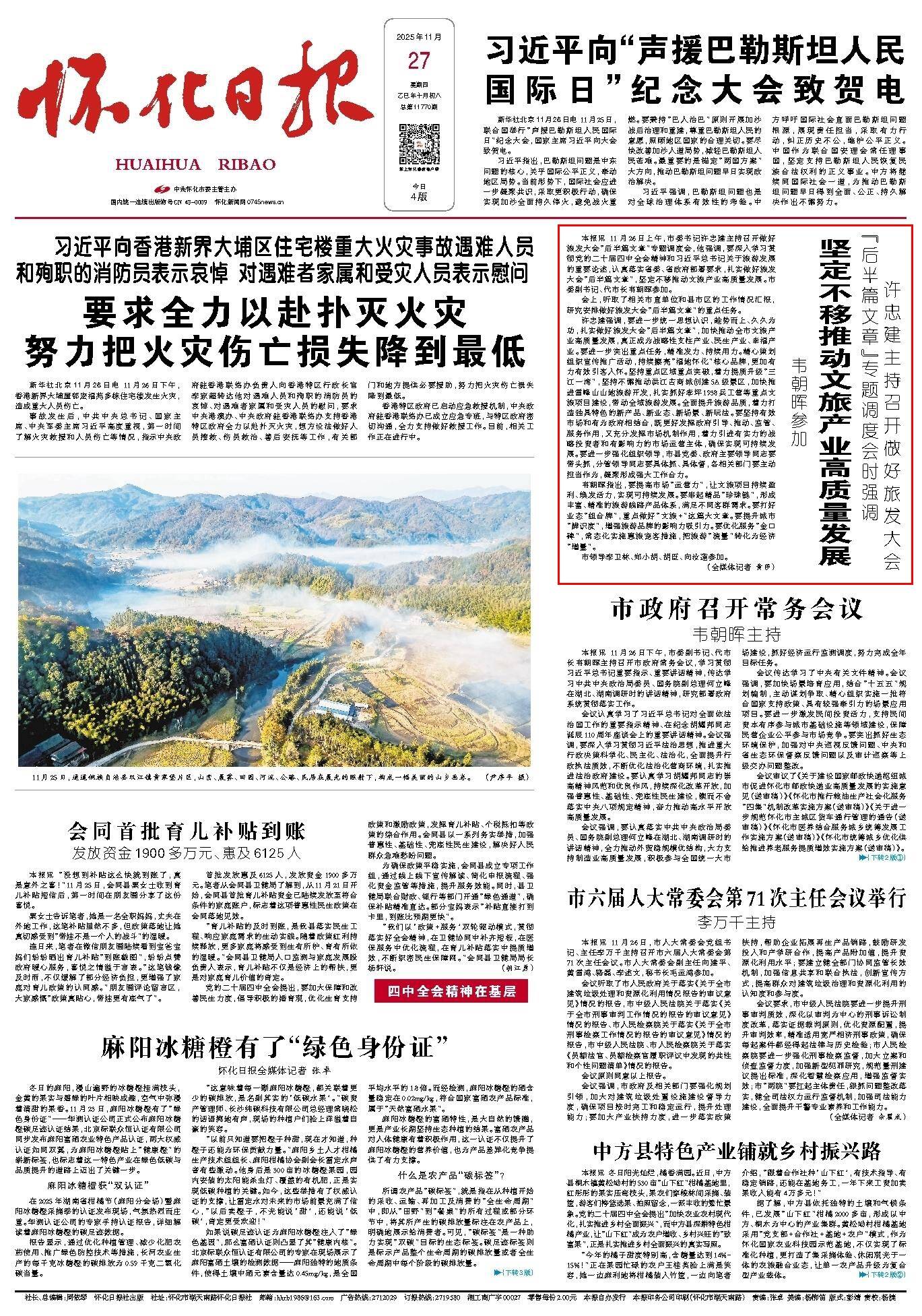 怀化日报全媒体讯11月26日上午,市委书记许忠建主持召开做好旅发大会“后半篇文章”专题调度会,他强调,要深入学习贯彻党的二十届四中全会精神和习近平总书记关于旅游发展的重要论述,认真落实省委、省政府部署要求,扎实做好旅发大会“后半篇文章”,坚定不移推动文旅产业高质量发展。市委副书记、代市长韦朝晖参加。
