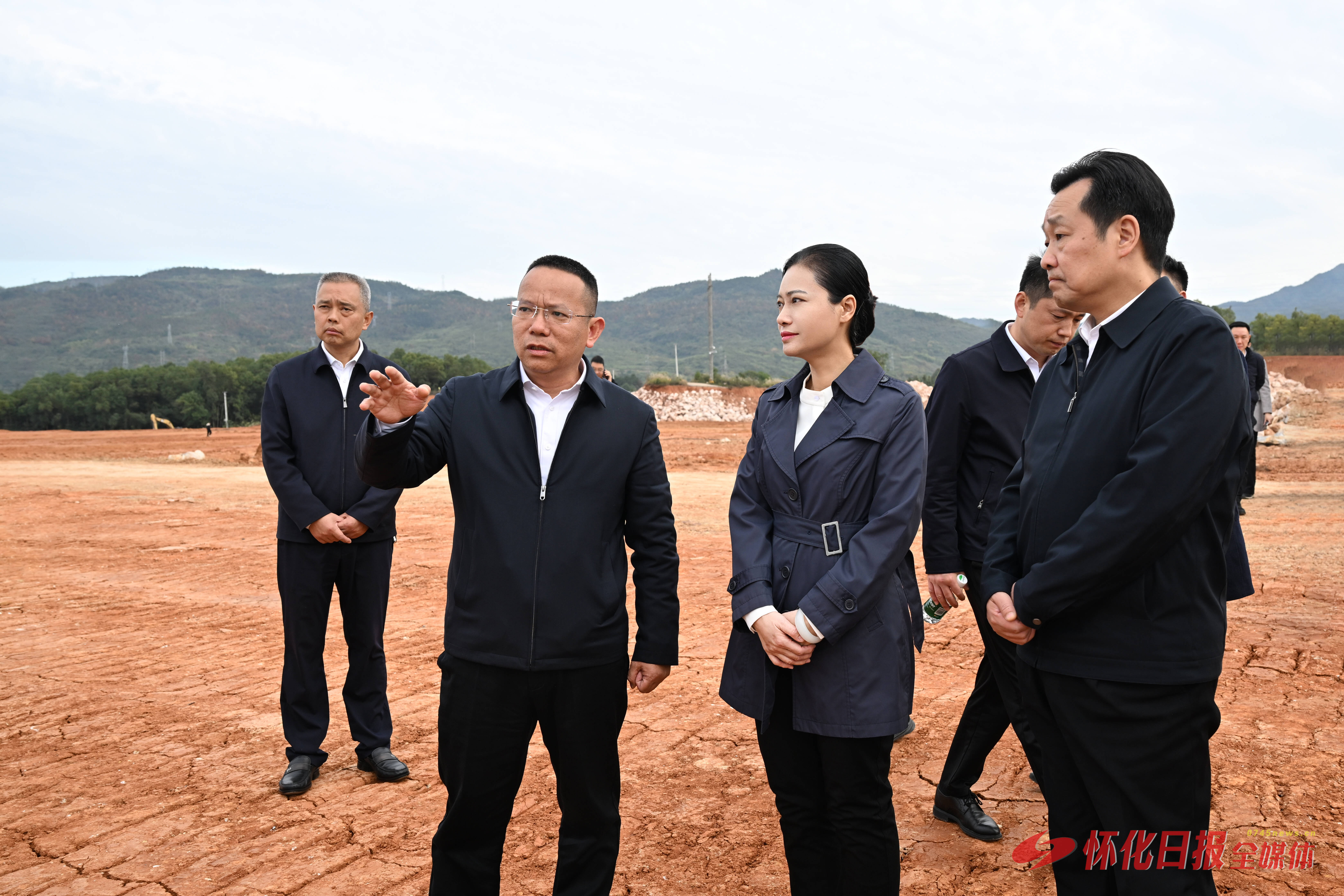 (11月22日,市委副书记、代市长韦朝晖在鹤城区调研。图为韦朝晖在怀化国际粮食物流加工产业园项目现场仔细了解项目规划建设情况。怀化日报全媒体记者 吴涛 摄)